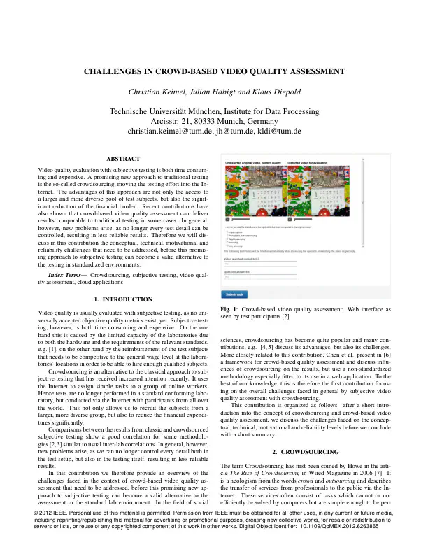 Video quality evaluation with subjective testing is both time consuming and expensive. A promising new approach to traditional testing is the so-called crowdsourcing, moving the testing effort into the Internet. The advantages of this approach are not only the access to a larger and more diverse pool of test subjects, but also the significant reduction of the financial burden. Recent contributions have also shown that crowd-based video quality assessment can deliver results comparable to traditional testing in some cases. In general, however, new problems arise, as no longer every test detail can be controlled, resulting in less reliable results. Therefore we will discuss in this contribution the conceptual, technical, motivational and reliability challenges that need to be addressed, before this promising approach to subjective testing can become a valid alternative to the testing in standardized environments.